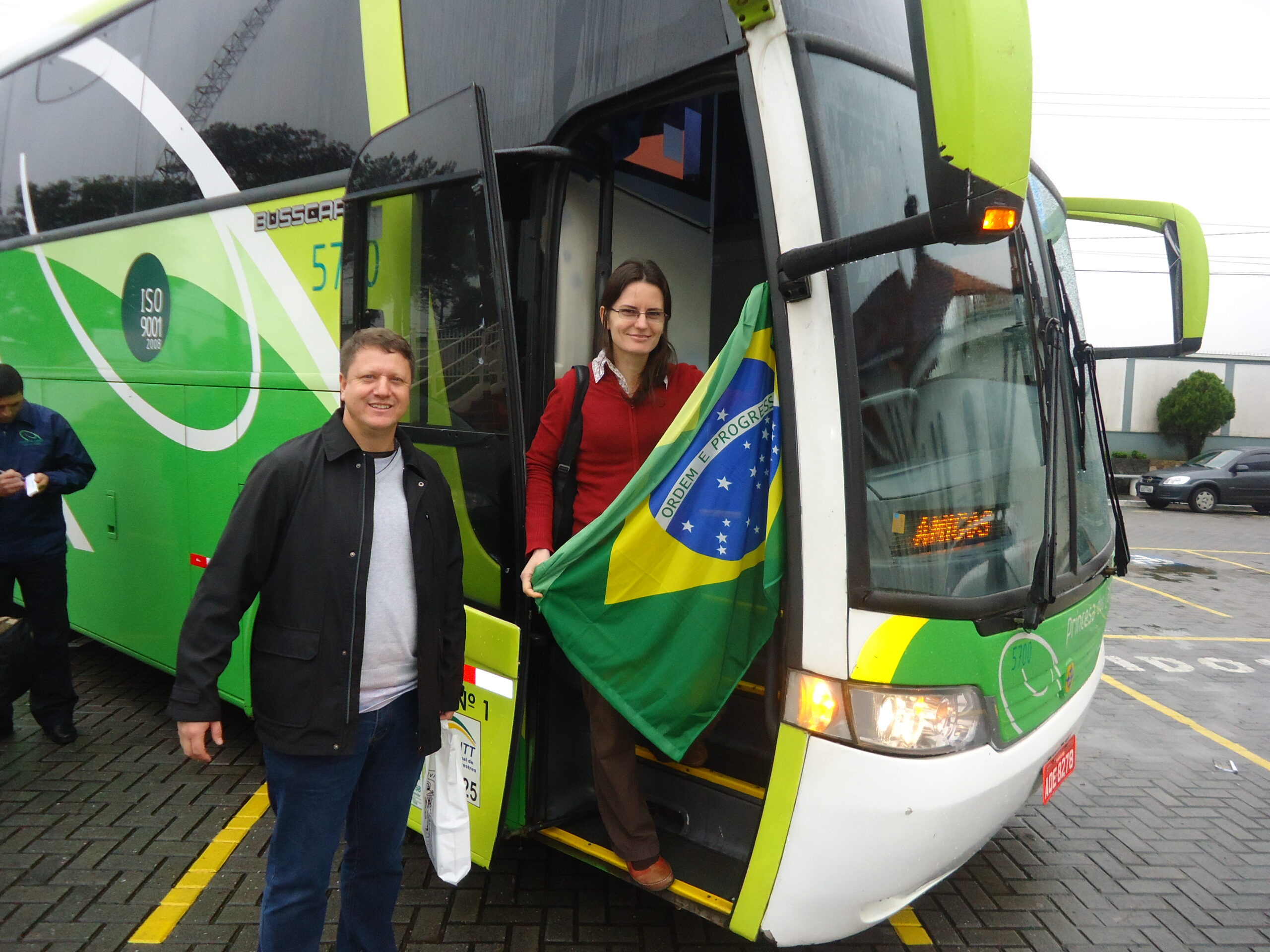 Grupo de Jovens peregrinos do Santuário da Divina Misericórdia de Curitiba e da Paróquia São Jorge reunidos, aguardando embarque para o primeiro ônibus da caravana DOMUS rumo a Jornada Mundial da Juventude 2013 no Rio de Janeiro.